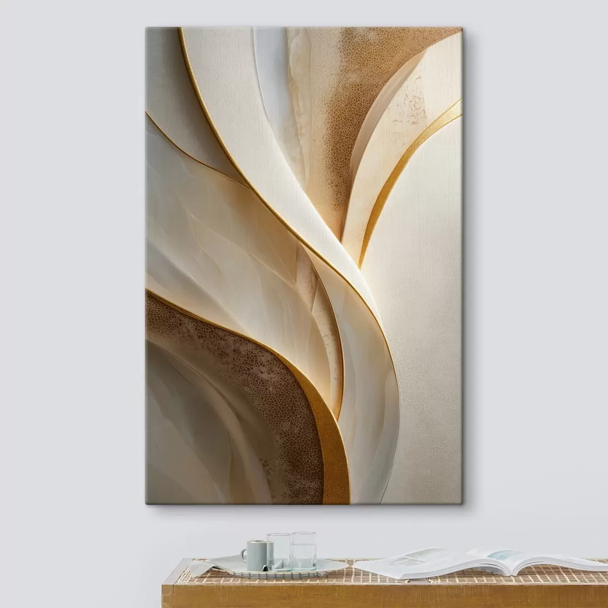 Tableau Courbes abstraites rehaussées de touches jaune-orange et beige s45807