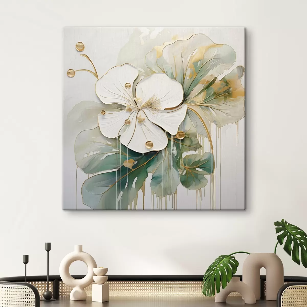 Tableau Une fleur blanche avec des détails jaune-orange et des feuilles vertes Nr s45815