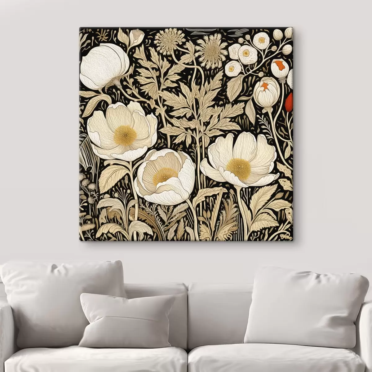 Tableau Fleurs et herbes crème sur fond noir Nr s45816