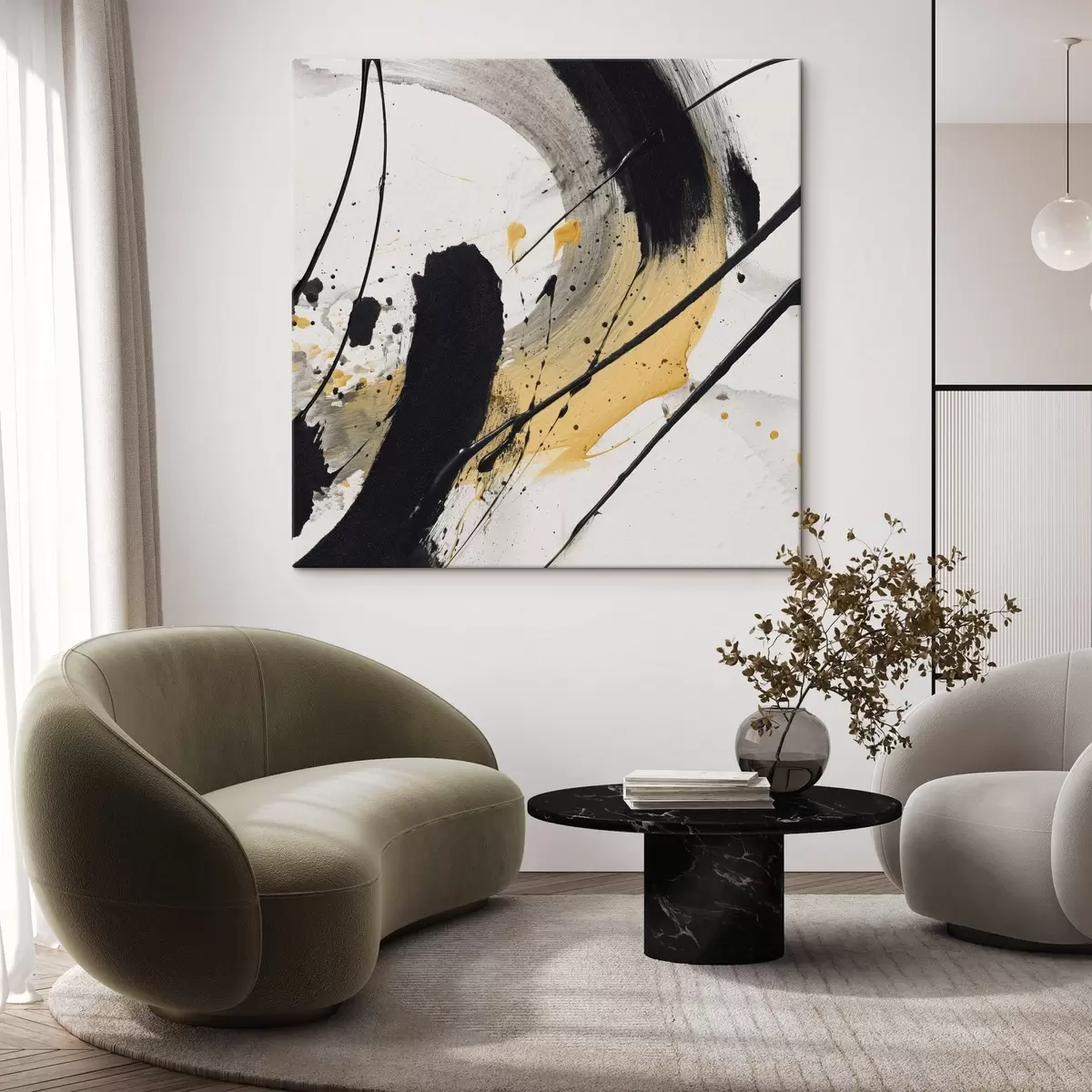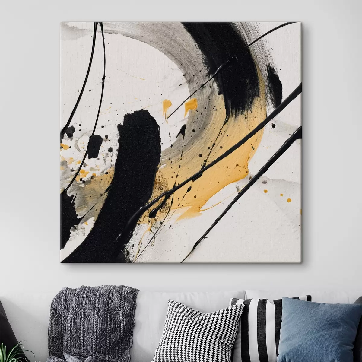 Tableau Expression en noir et jaune dans le style pictural s45847