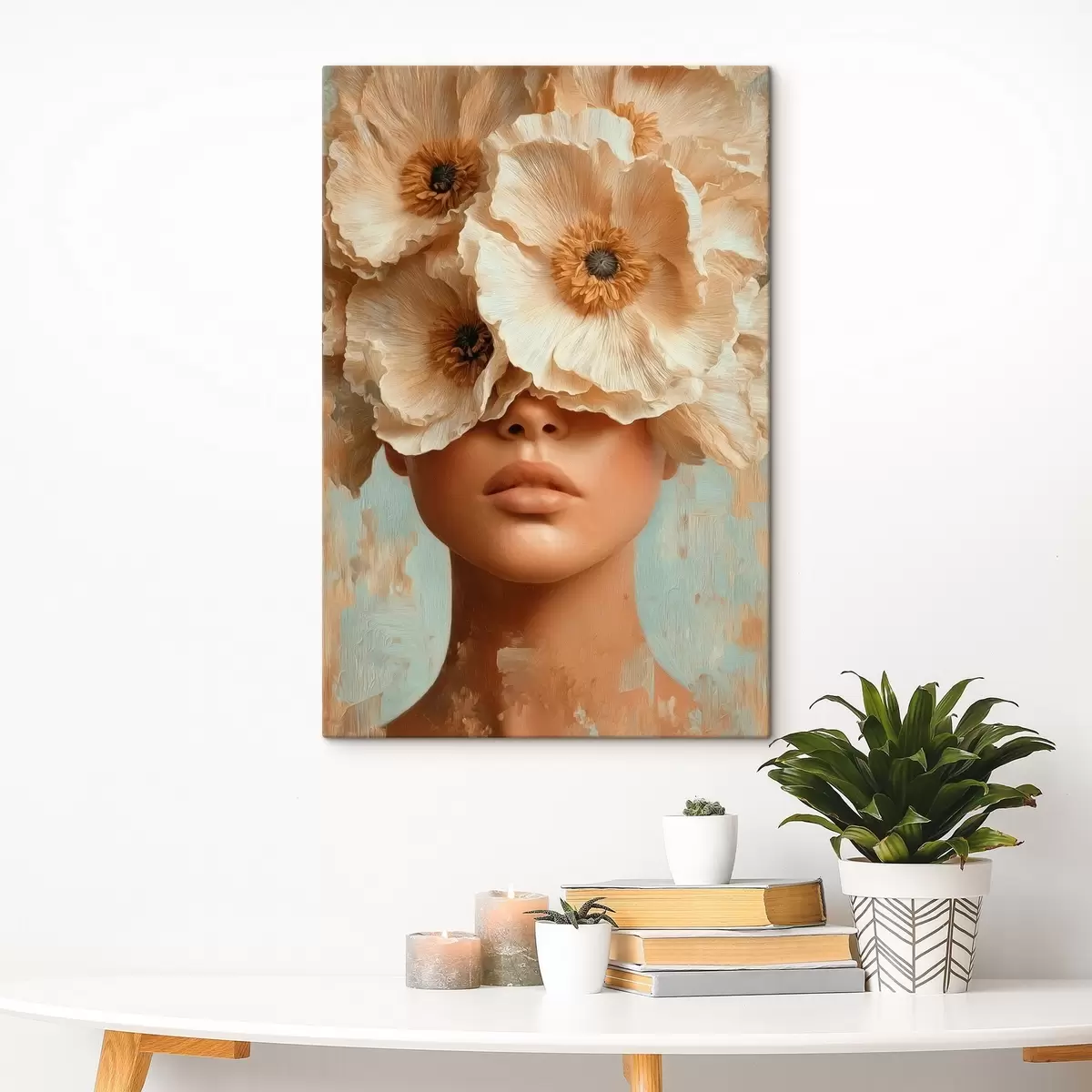 Tableau Portrait avec des fleurs beiges couvrant les yeux Nr s45870