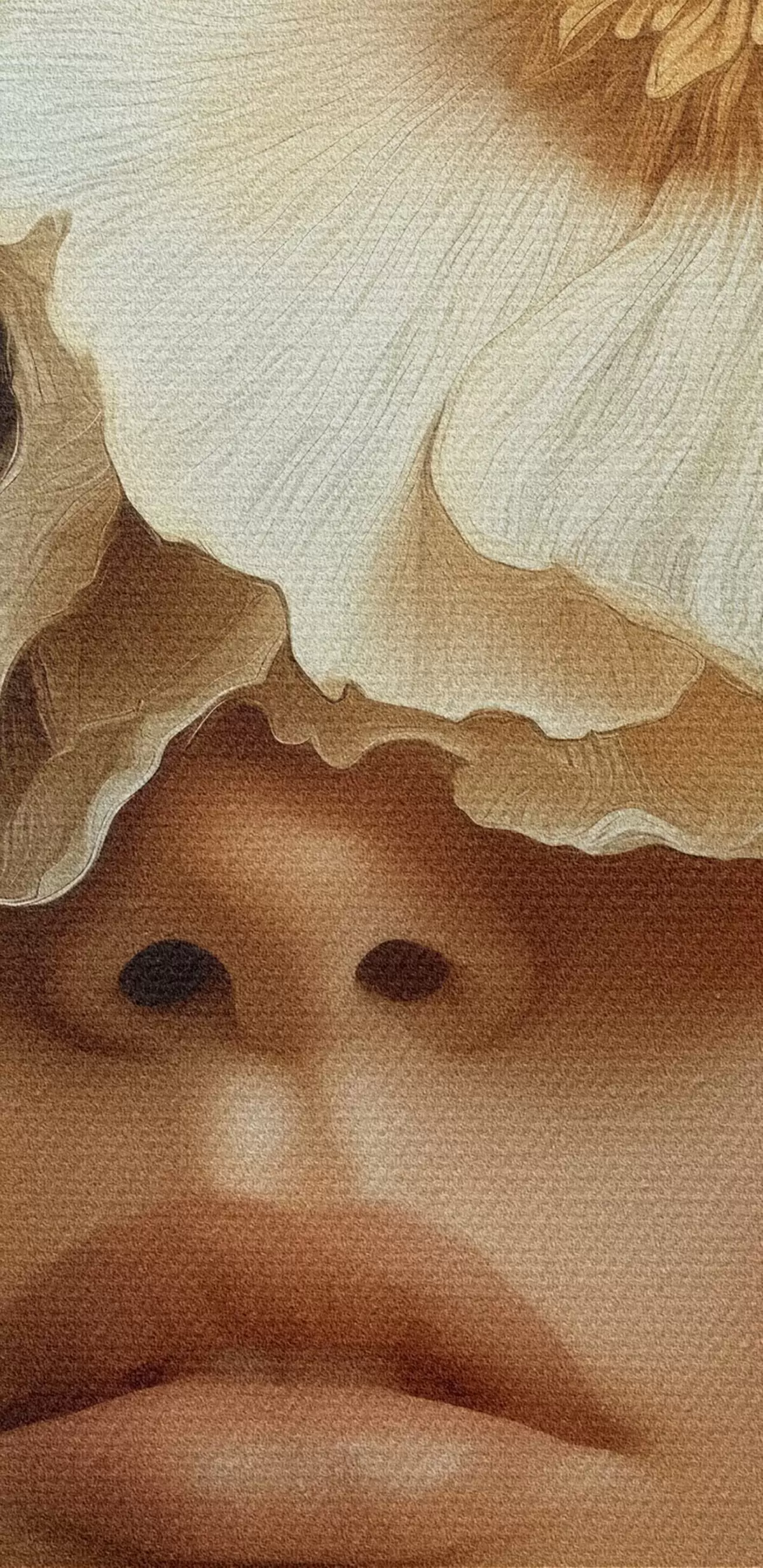 Tableau Portrait avec des fleurs beiges couvrant les yeux Nr s45870