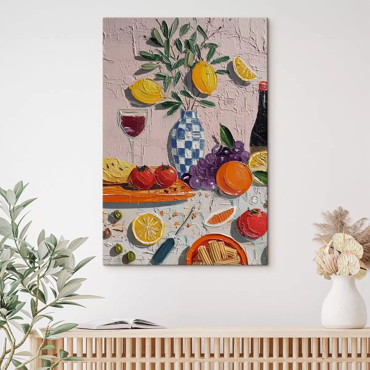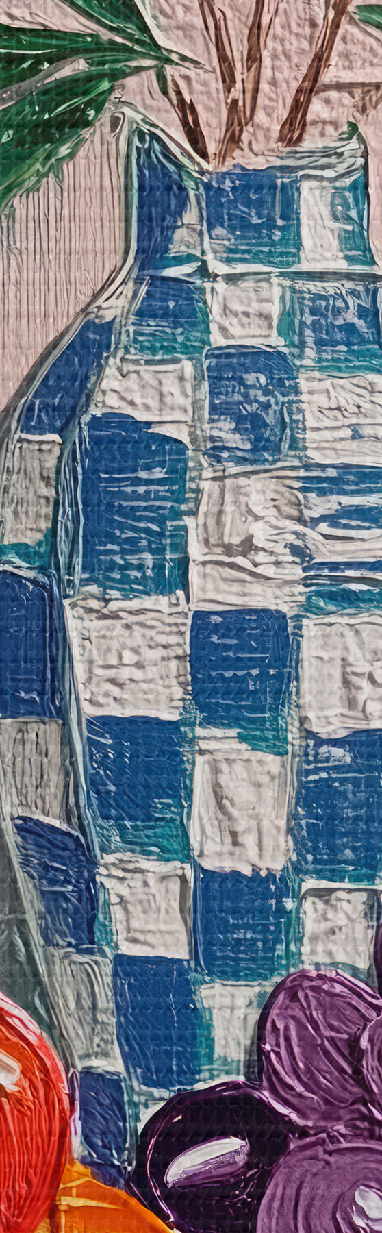 Tableau Nature morte pastel : citrons, raisins et tomates, empâtement s45876