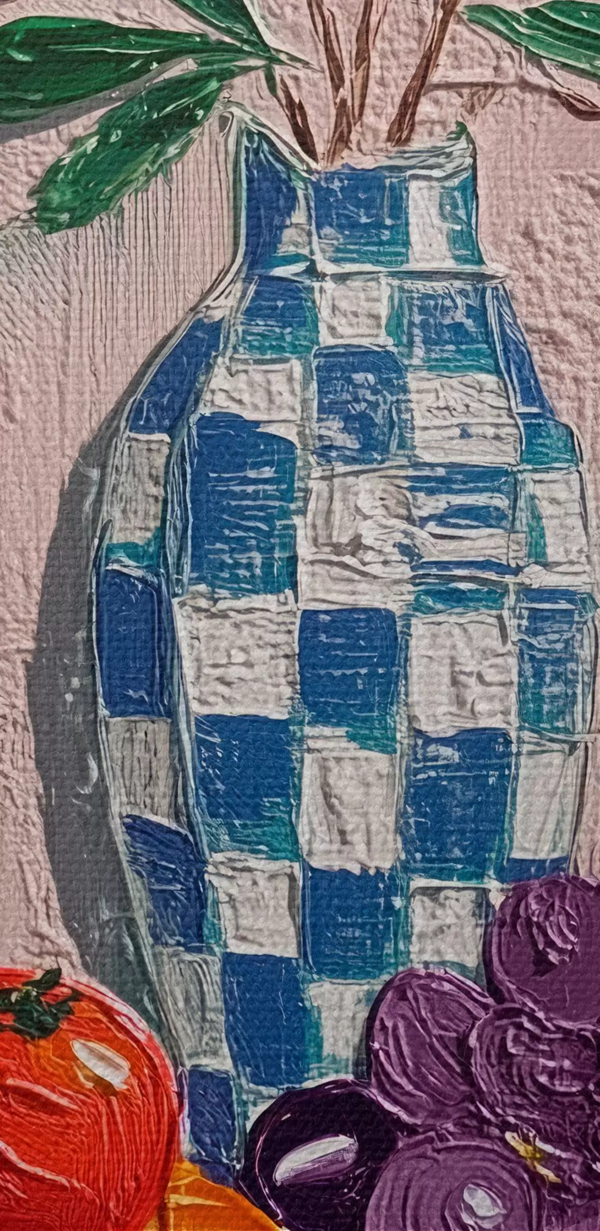 Tableau Nature morte pastel : citrons, raisins et tomates, empâtement s45876