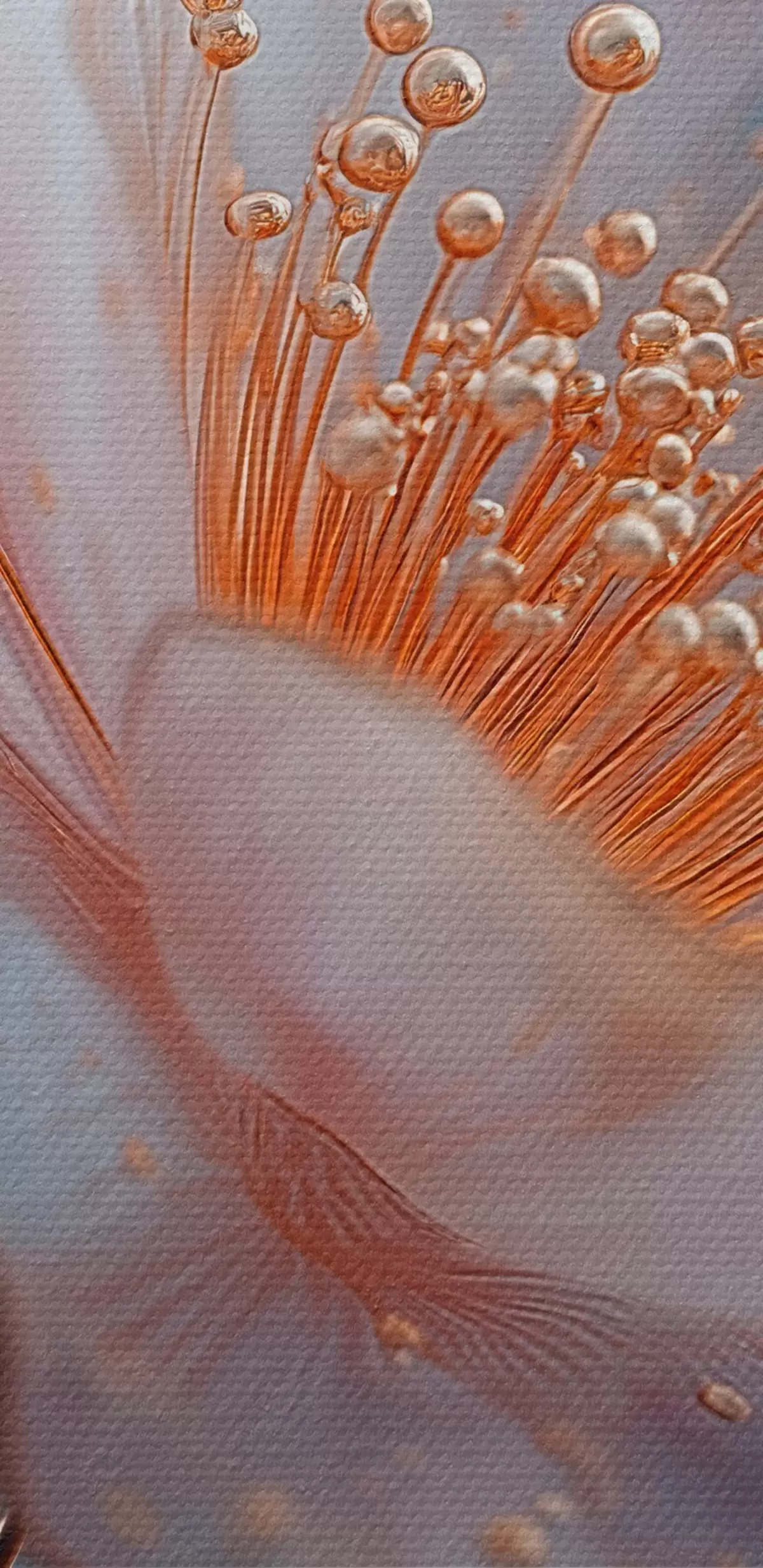 Tableau Fleur translucide avec des étamines cuivrées sur fond bleu Nr s45880