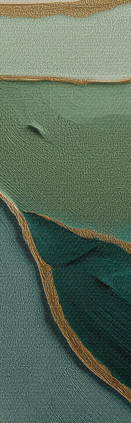Tableau Abstraction verte en couches avec des lignes jaunes et de la profondeur s45902