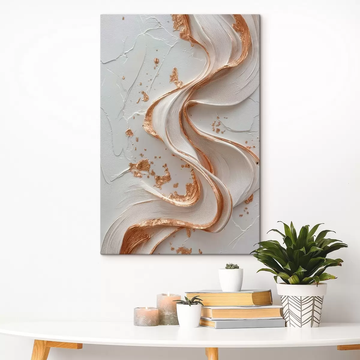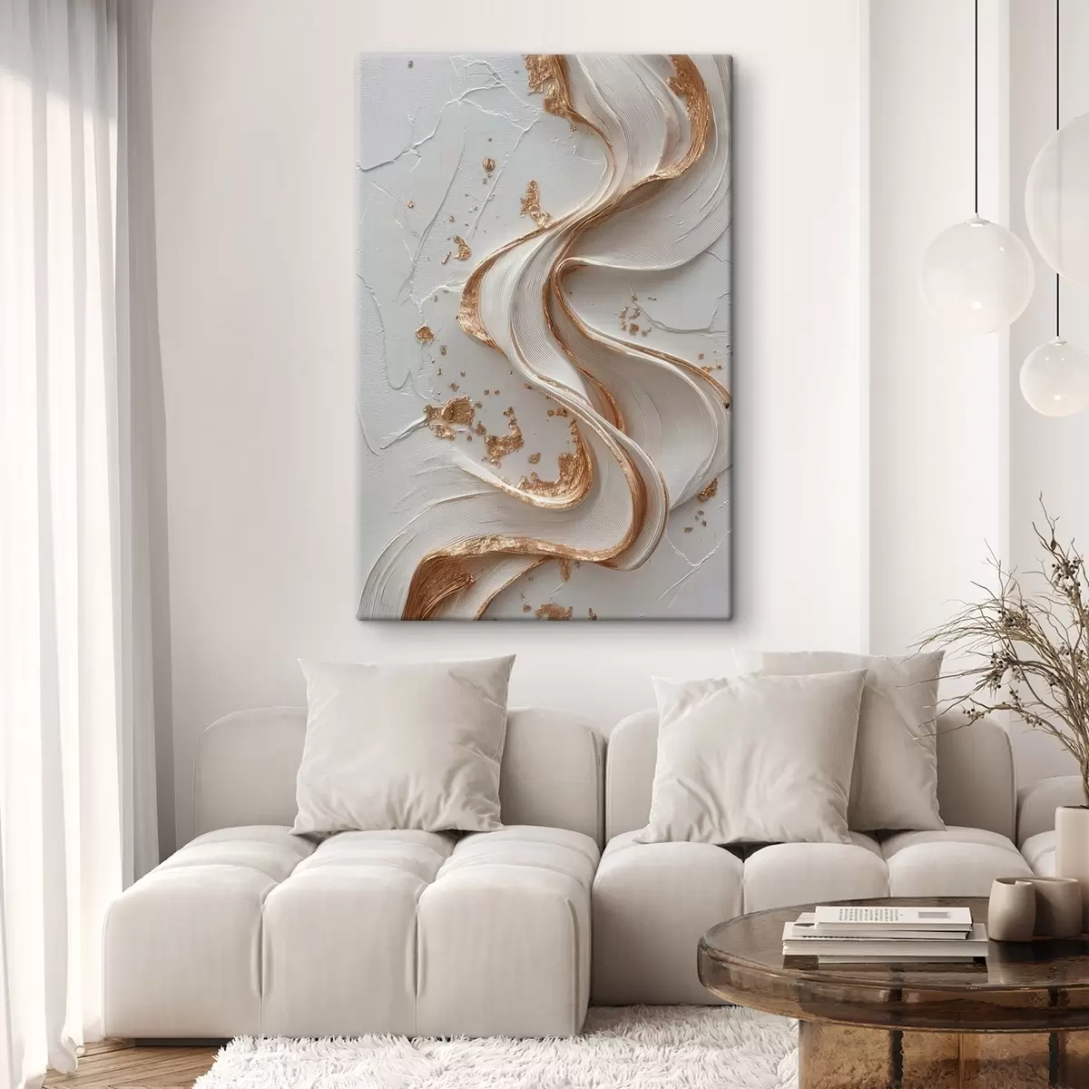 Tableau Traits texturés blancs et jaunes avec accents métalliques s45906