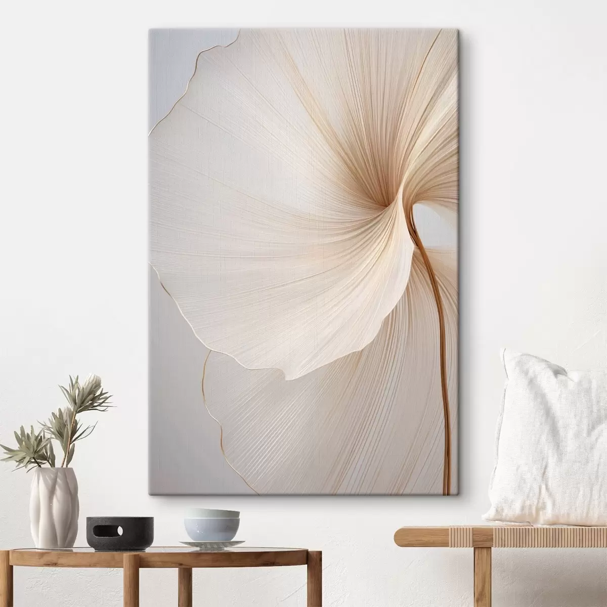 Tableau Fleurs abstraites aux pétales fins et délicats dans des tons de blanc et de beige Nr s45922