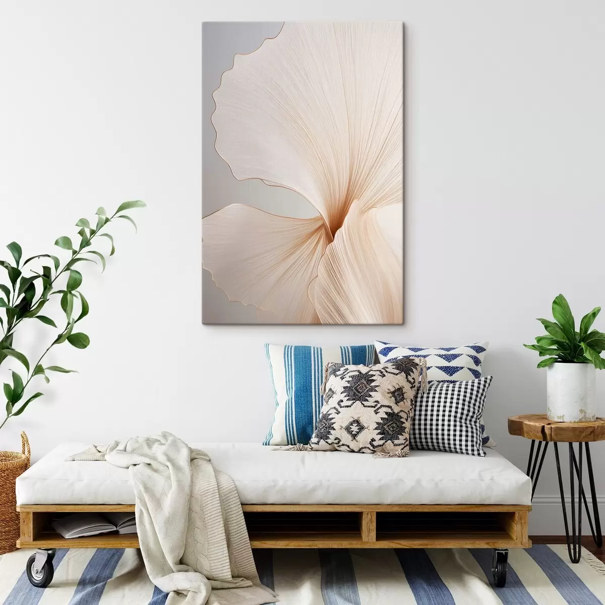 Tableau Fleurs abstraites aux pétales fins et délicats dans des tons de blanc et de beige s45923