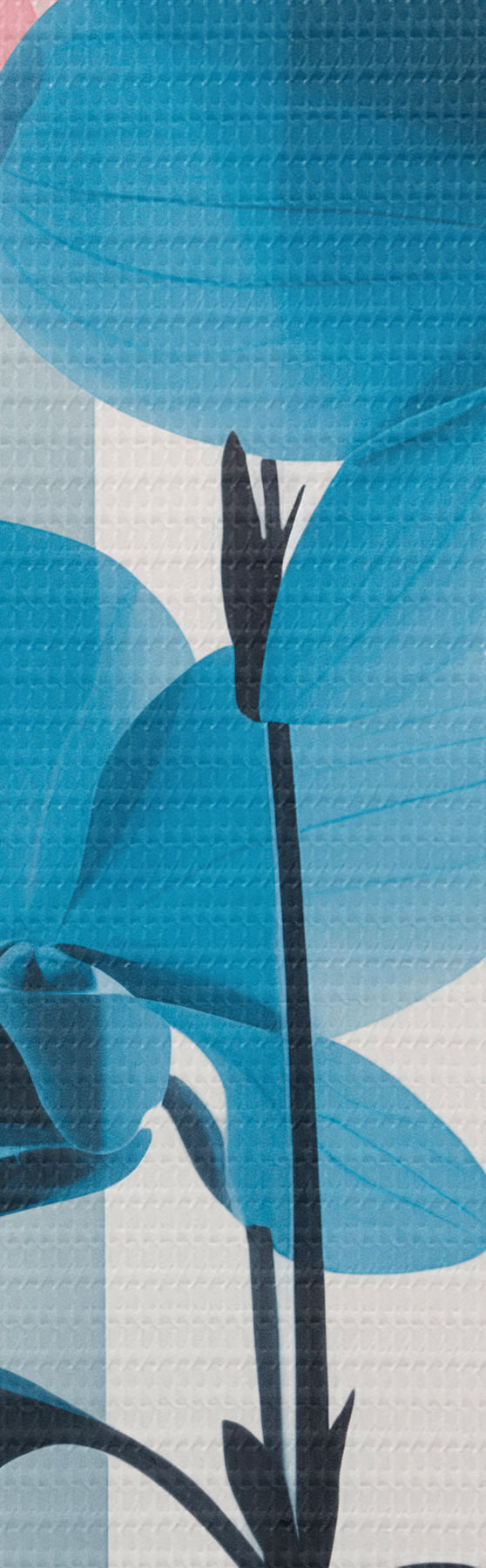 Tableau Orchidées avec feuilles sur fond blanc rayé verticalement Nr s45925