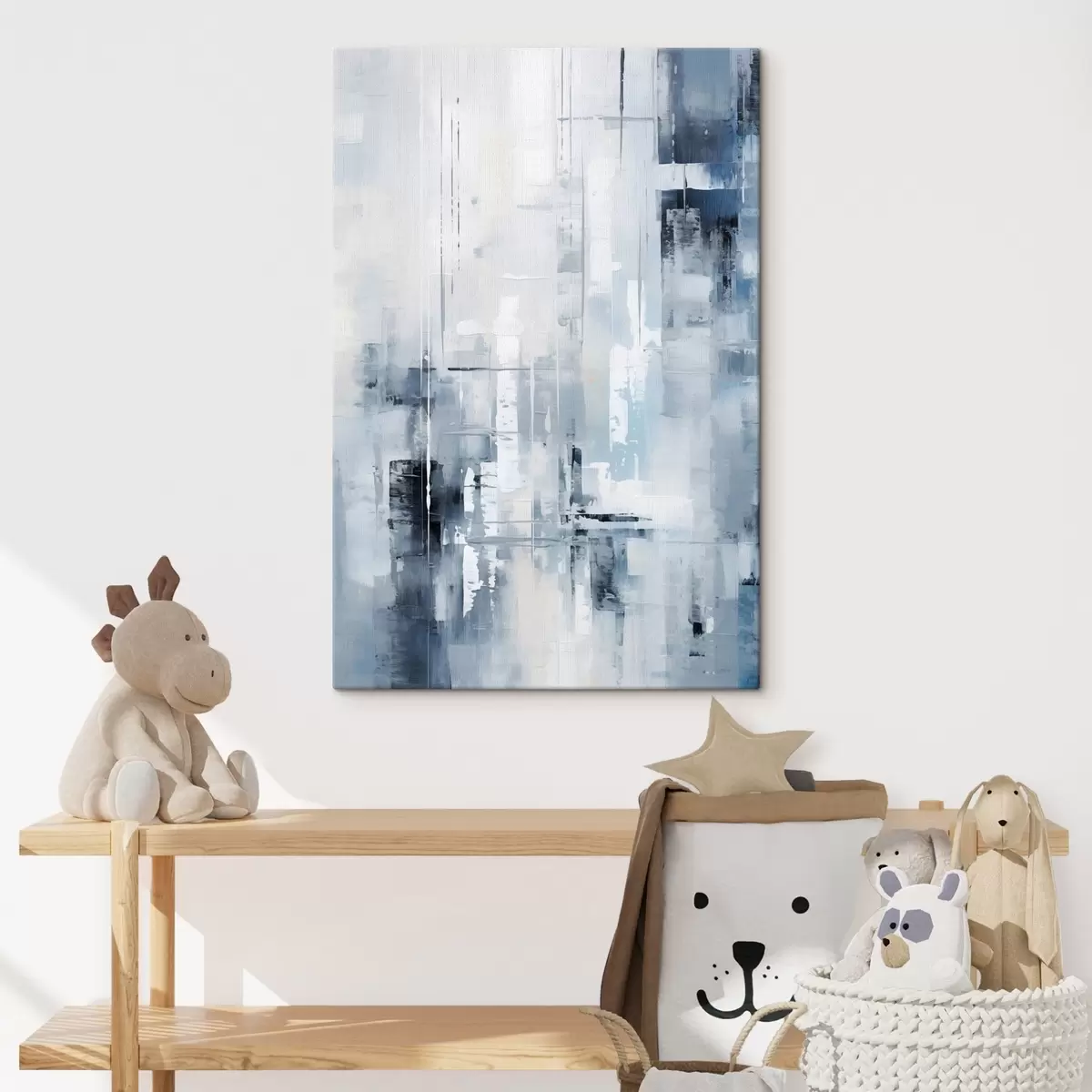 Tableau Imitation de peinture abstraite avec des couleurs bleues, grises et blanches, des lignes verticales et des formes géométriques Nr s45927