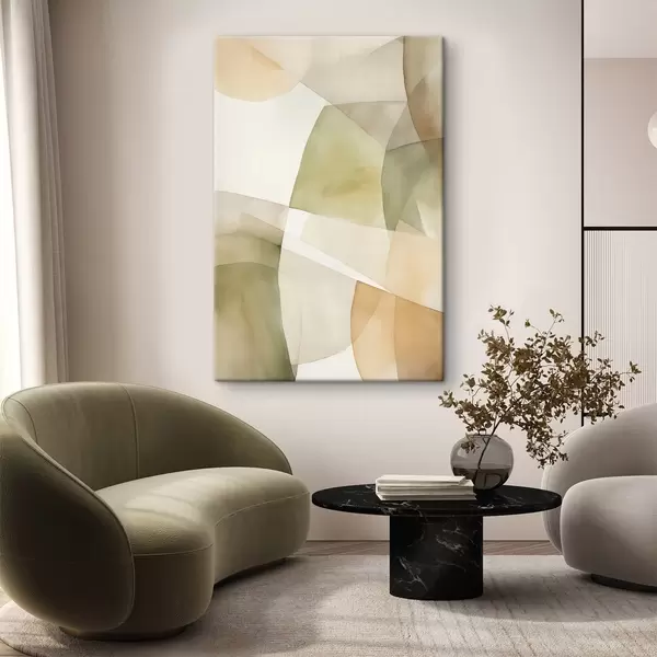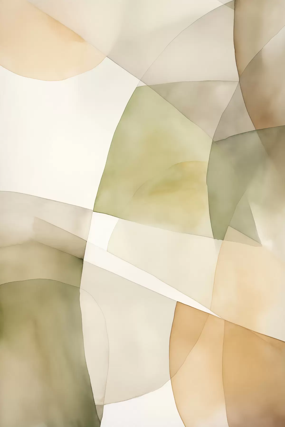 Tableau Formes géométriques abstraites texturées à l'aquarelle dans des tons de vert, marron et beige Nr s45928