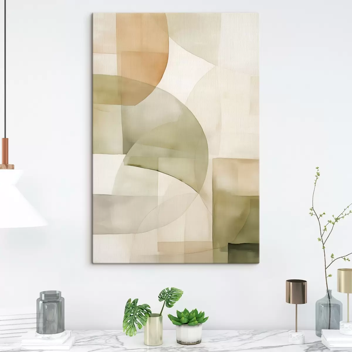 Tableau Formes géométriques abstraites texturées à l'aquarelle dans des tons de vert, marron et beige Nr s45929