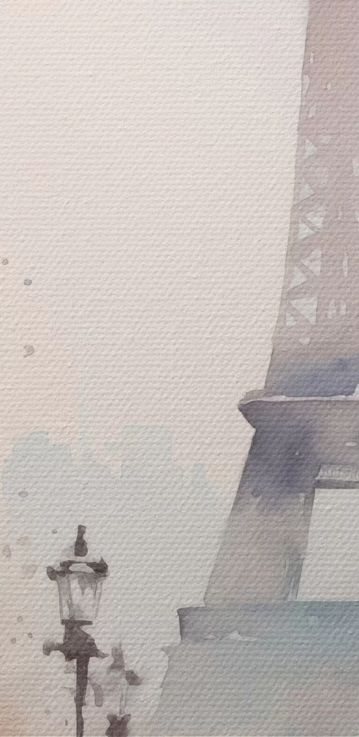 Tableau Une journée pluvieuse à Paris avec la tour Eiffel en arrière-plan et des lampadaires vintage s45930