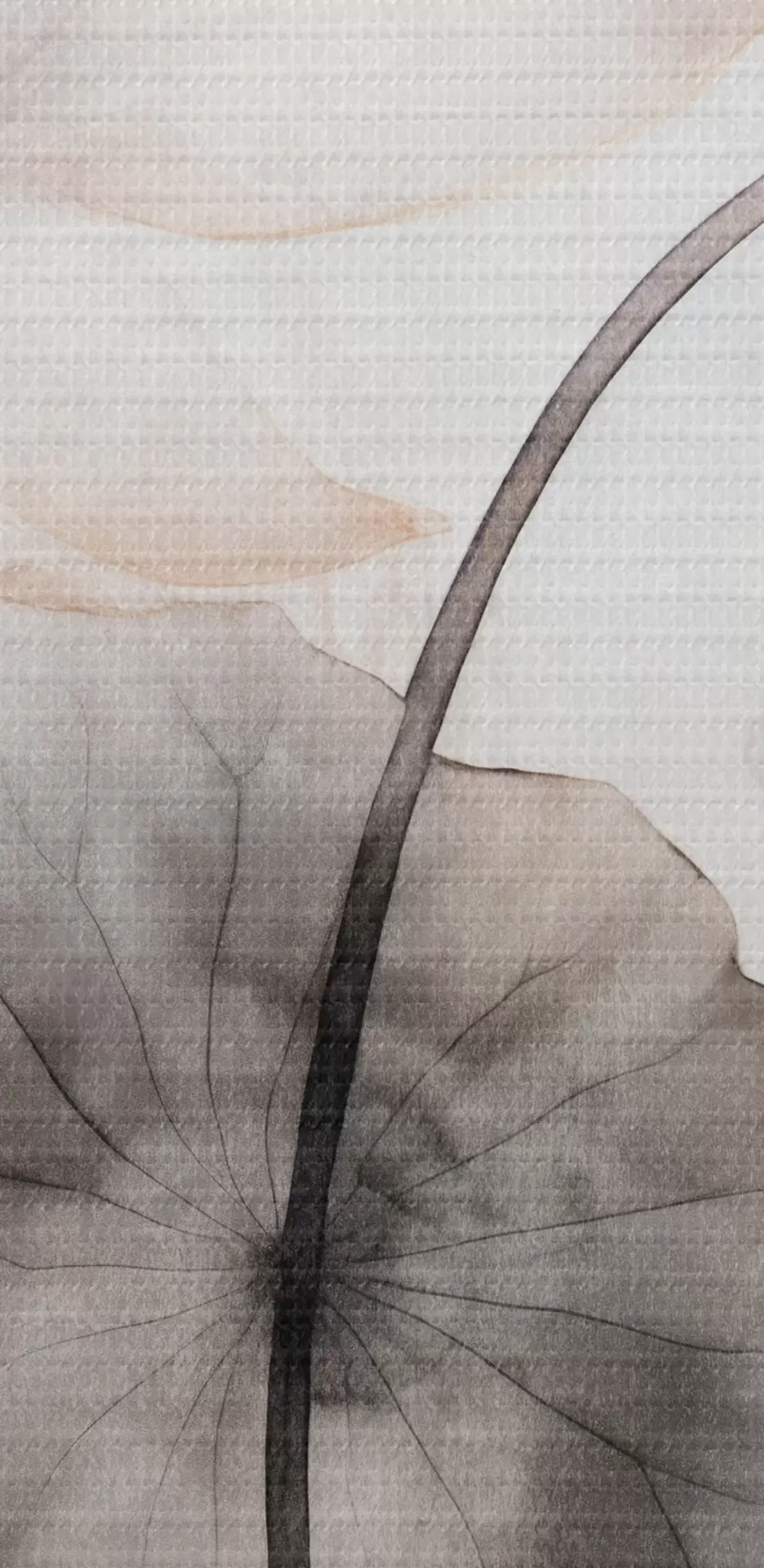 Tableau Fleurs de lotus blanches texturées avec des feuilles foncées, fond clair, design minimaliste Nr s45937