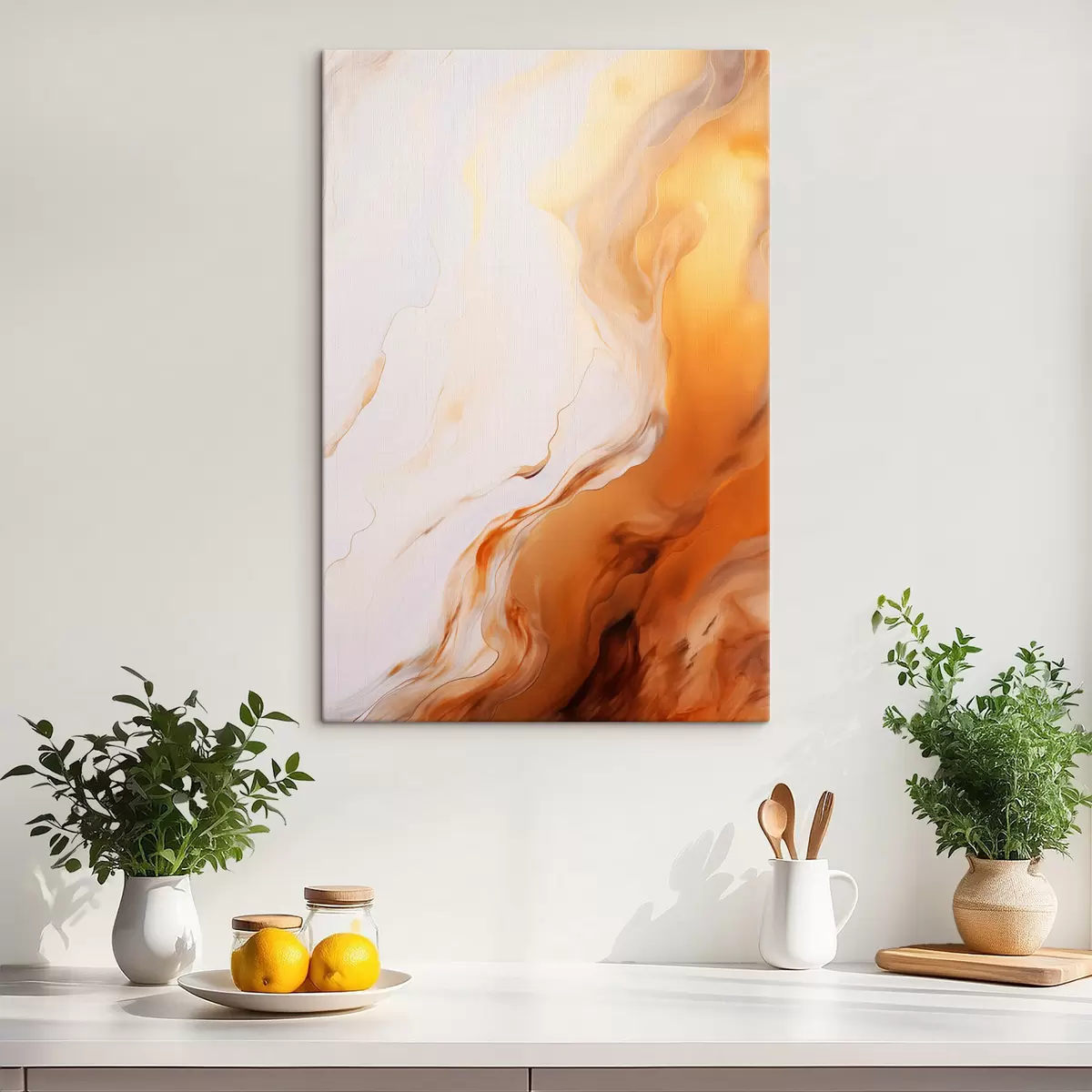 Tableau Imitation de peinture abstraite avec des couleurs blanches et orange, art fluide avec des lignes ondulées, art moderne s45939
