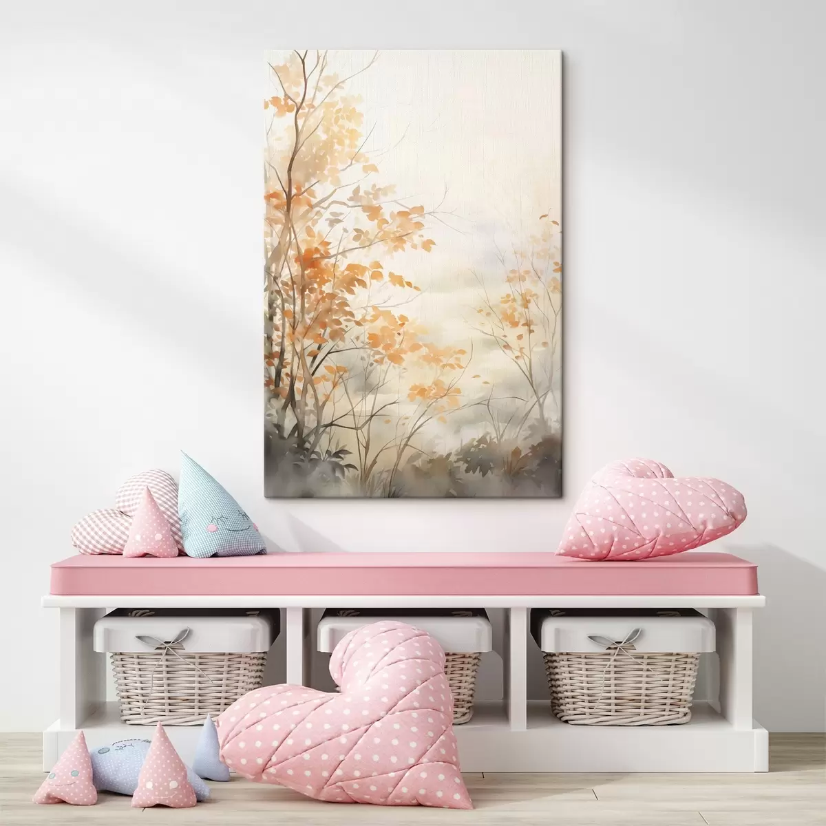 Tableau Arbres d'automne aux feuilles et branches orange, style aquarelle doux, coups de pinceau délicats Nr s45941