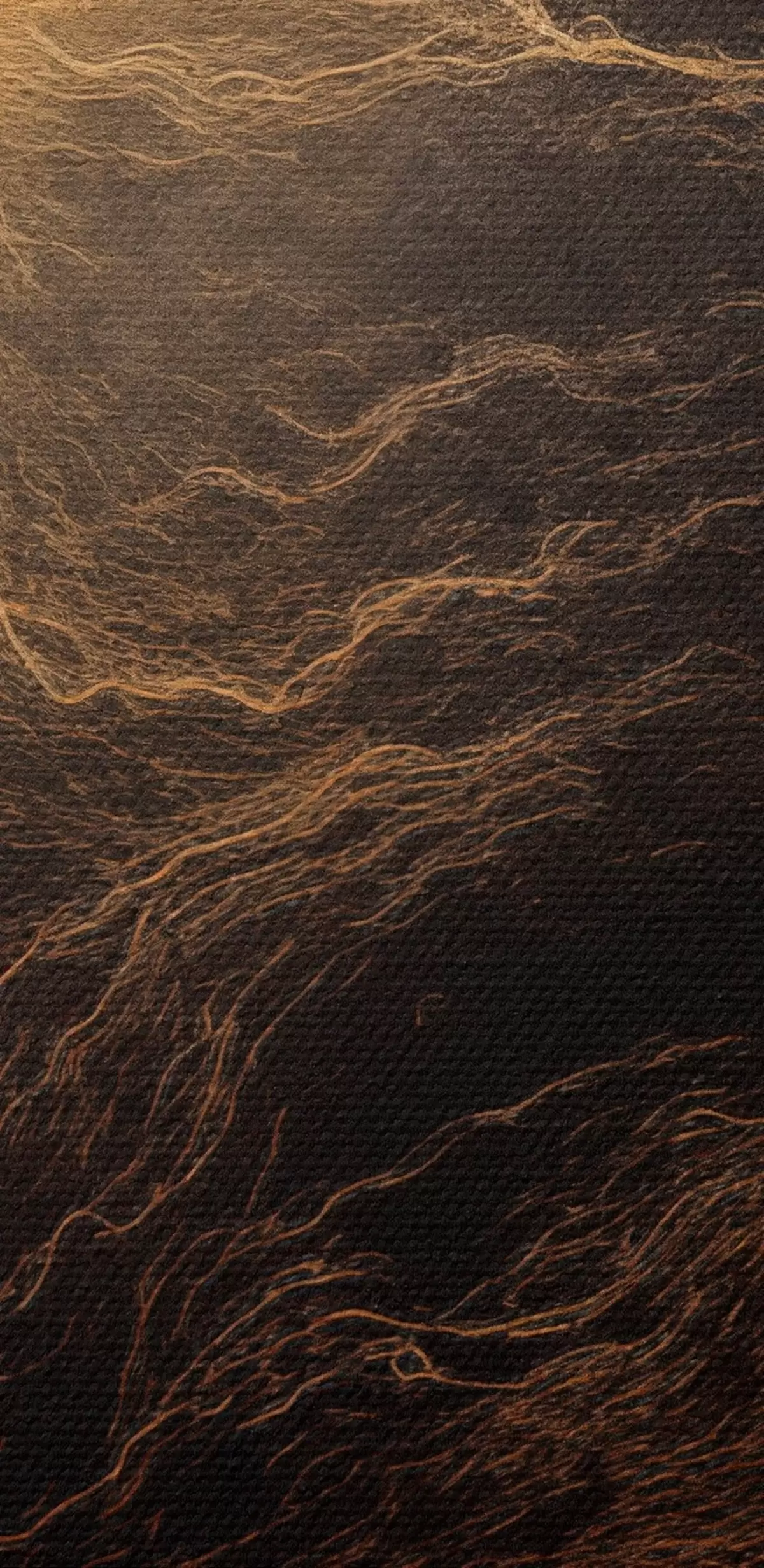 Tableau Planète abstraite avec des veines orange sur fond noir, art minimaliste moderne s45943