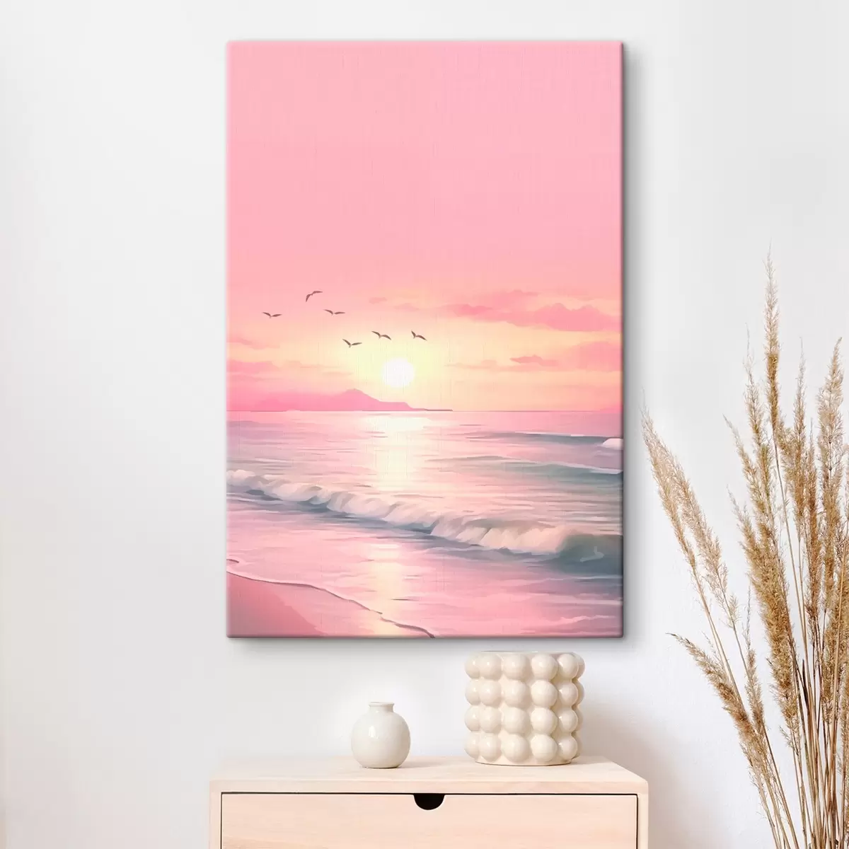 Tableau Coucher de soleil rose sur la mer s45955
