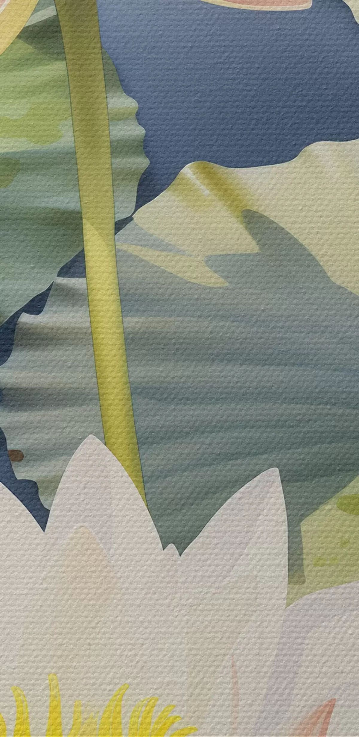 Trois types de matériaux peuvent être commandés : Economic Canvas - matériau dense et durable pour l'impression numérique, identique à la toile de peintre, surface imperméable, reproduction réaliste des détails, matériau à grain moyen. Premium Canvas - la texture ressemble à celle d'une toile de peintre (petits fils entrelacés). Reproduction douce et détaillée de l'image sur une surface mate. Eco-Premium - tissu 100 % coton de haute qualité. Grâce aux fibres naturelles de coton, le matériau est durable et résistant à l'usure. Excellente reproduction des couleurs et des détails.