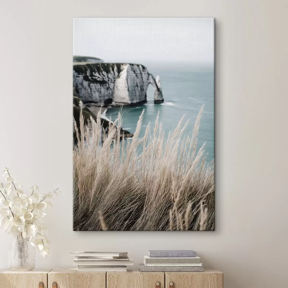 Tableau Mer et arche rocheuse, vue à travers les herbes sèches Nr s46142