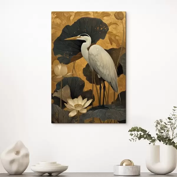Tableau Héron parmi les lotus sur un fond chaud Nr s46148