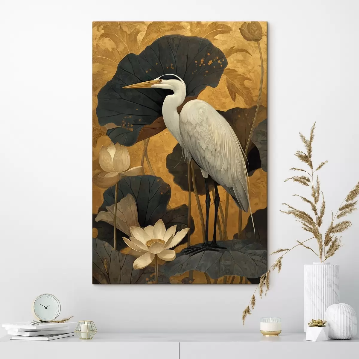 Tableau Héron parmi les lotus sur un fond chaud Nr s46148
