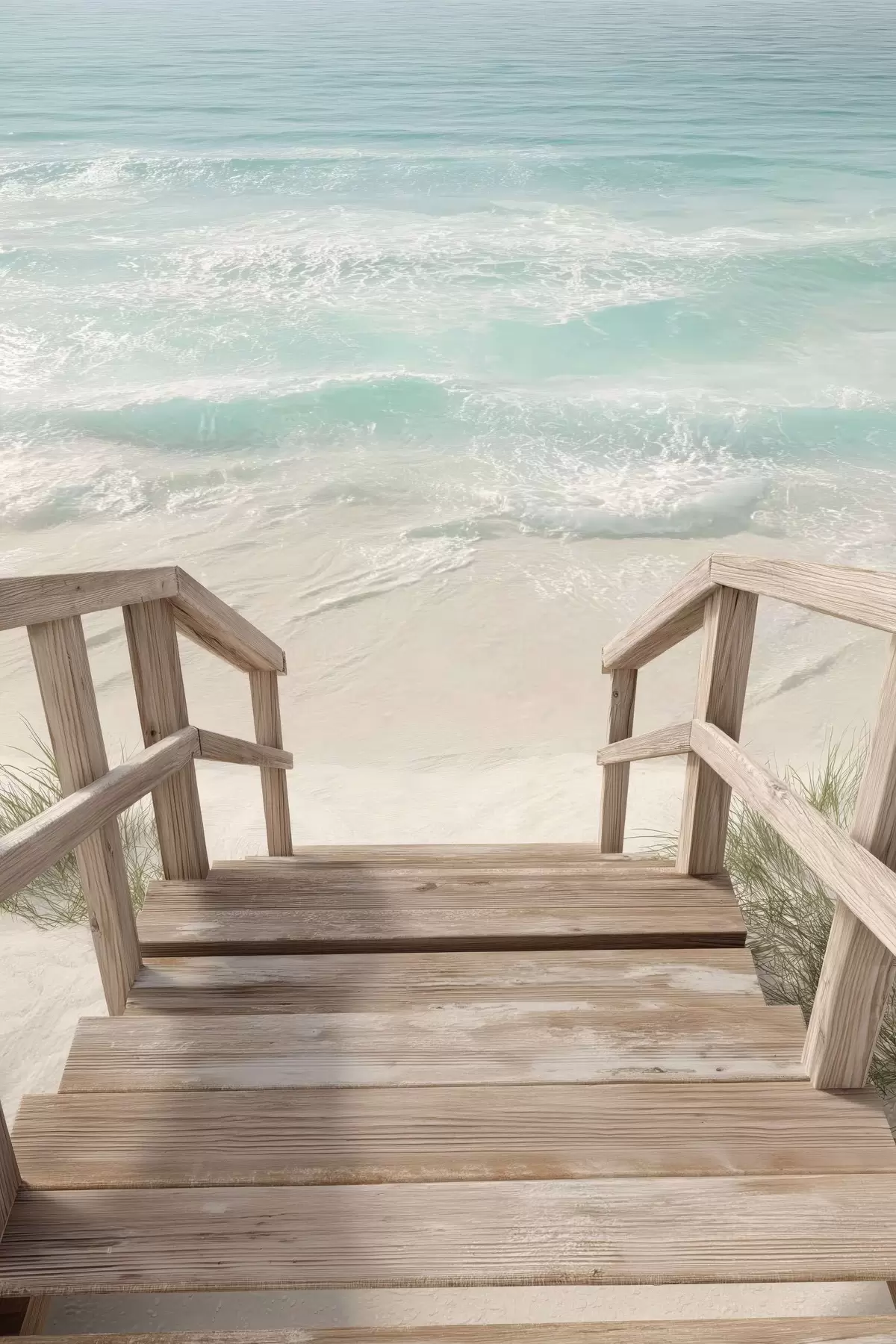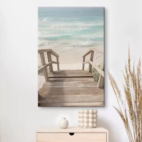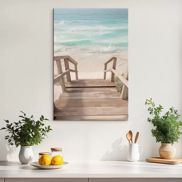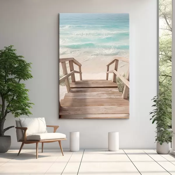 Tableau Escalier en bois menant à une plage turquoise Nr s46163