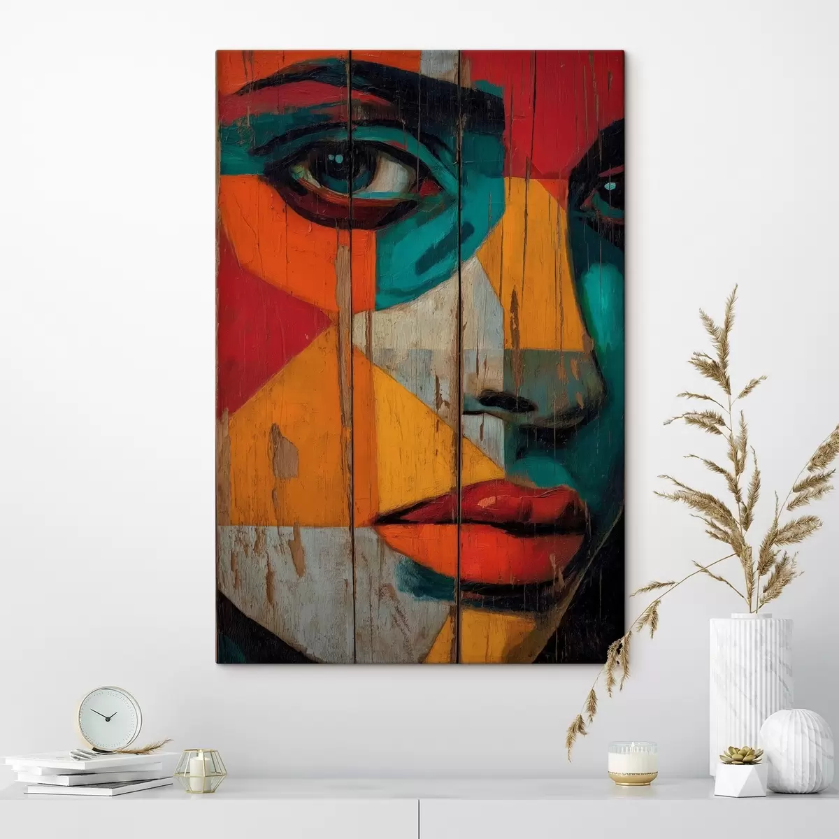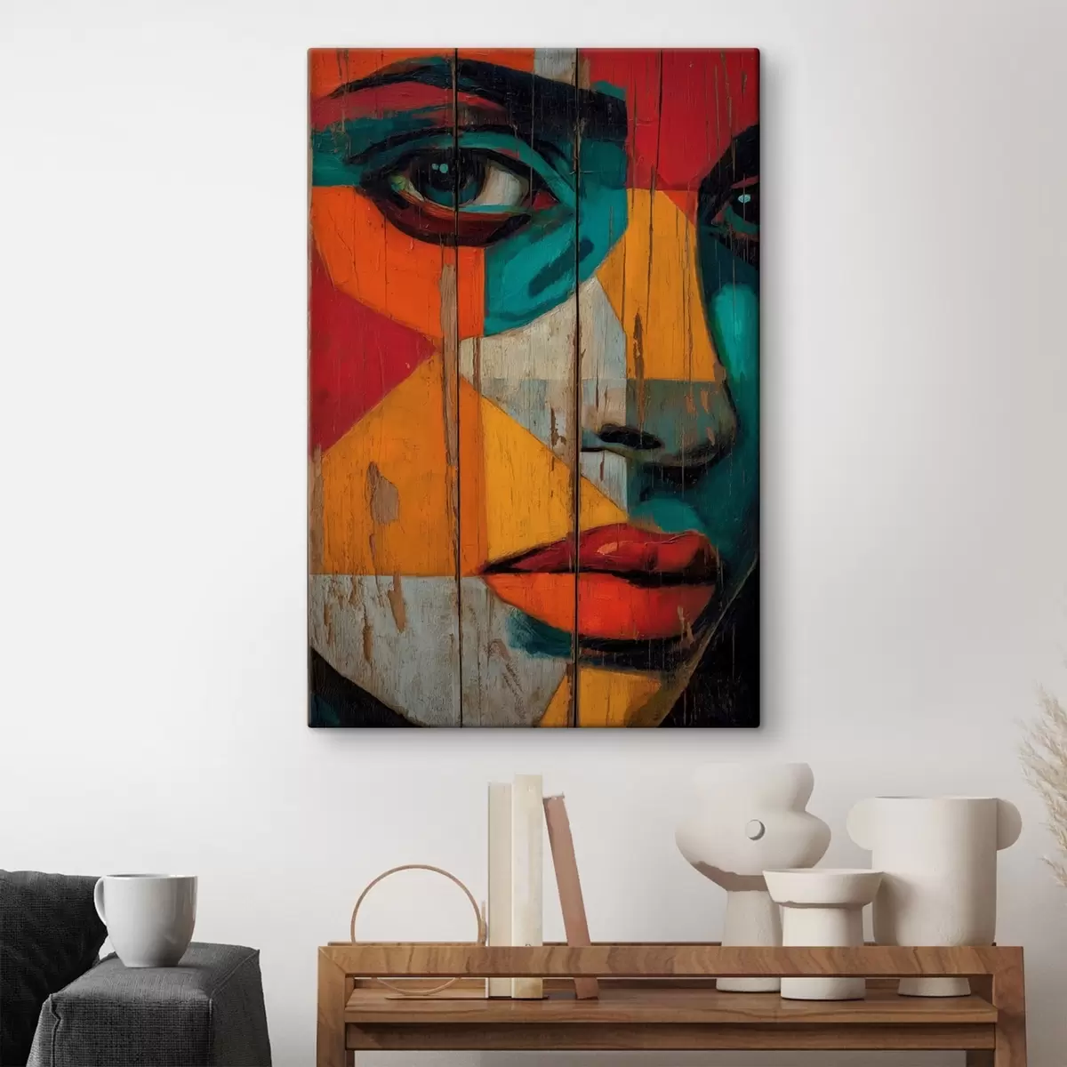Tableau Portrait géométrique lumineux sur panneaux de bois Nr s46165