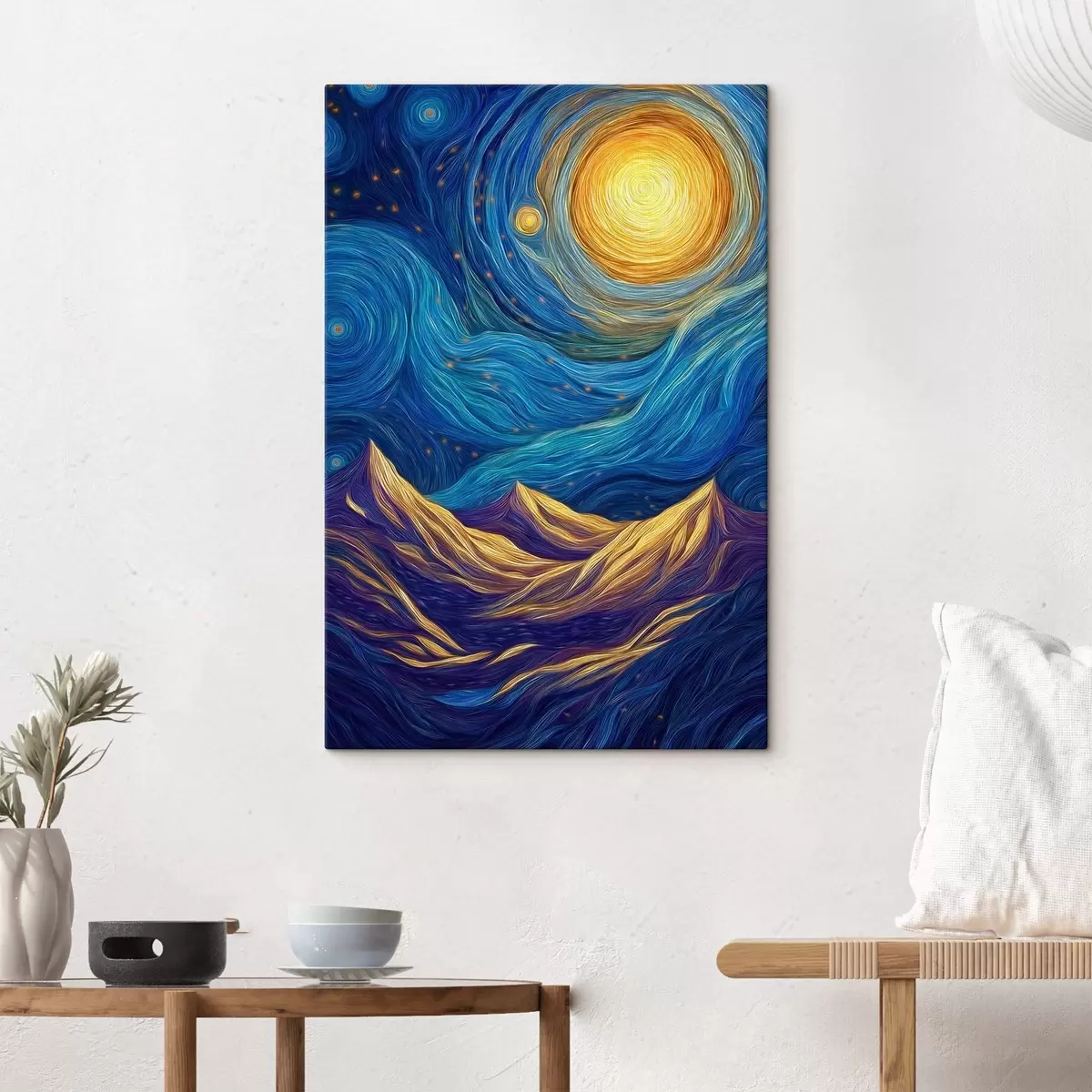 Tableau Ciel étoilé lumineux au-dessus des sommets montagneux Nr s46168