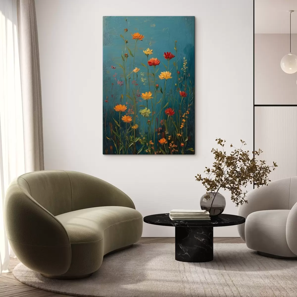 Tableau Fleurs sauvages sur fond turquoise foncé Nr s46169