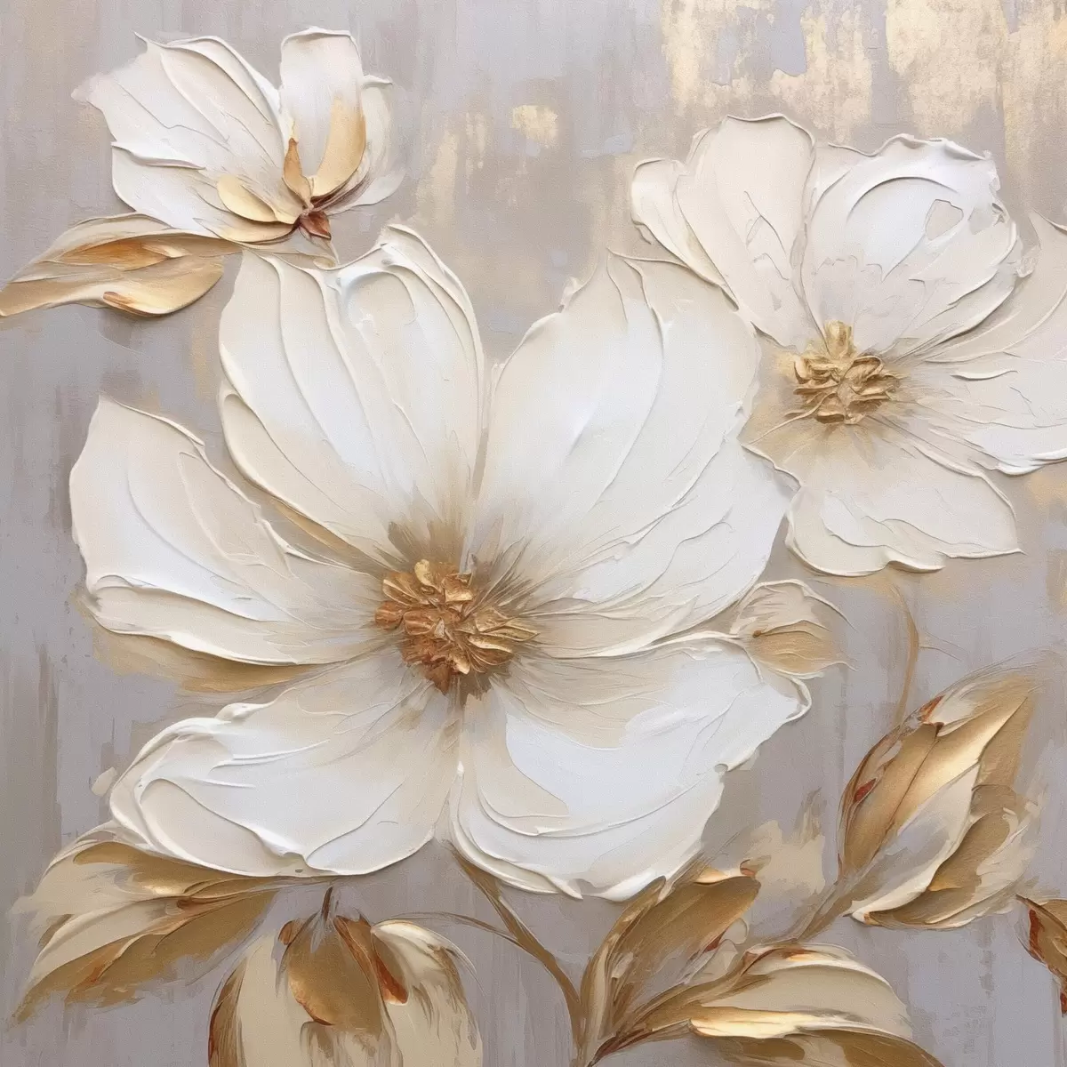 Tableau Grandes fleurs texturées avec des coups de pinceau dans une palette de couleurs chaudes s46176