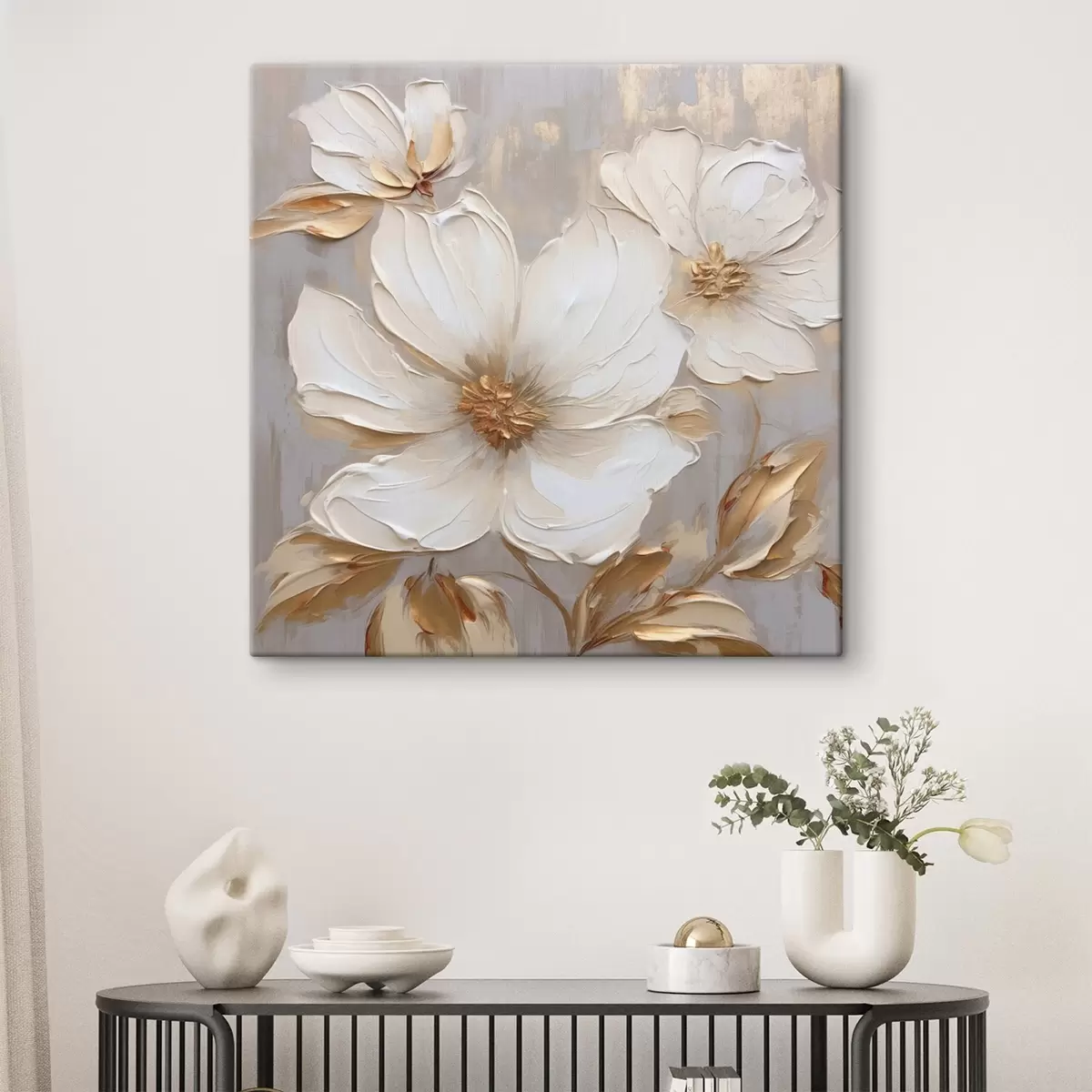 Tableau Grandes fleurs texturées avec des coups de pinceau dans une palette de couleurs chaudes s46176