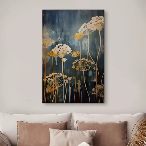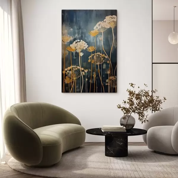 Tableau Fleurs stylisées aux tiges fines sur fond sombre Nr s46188