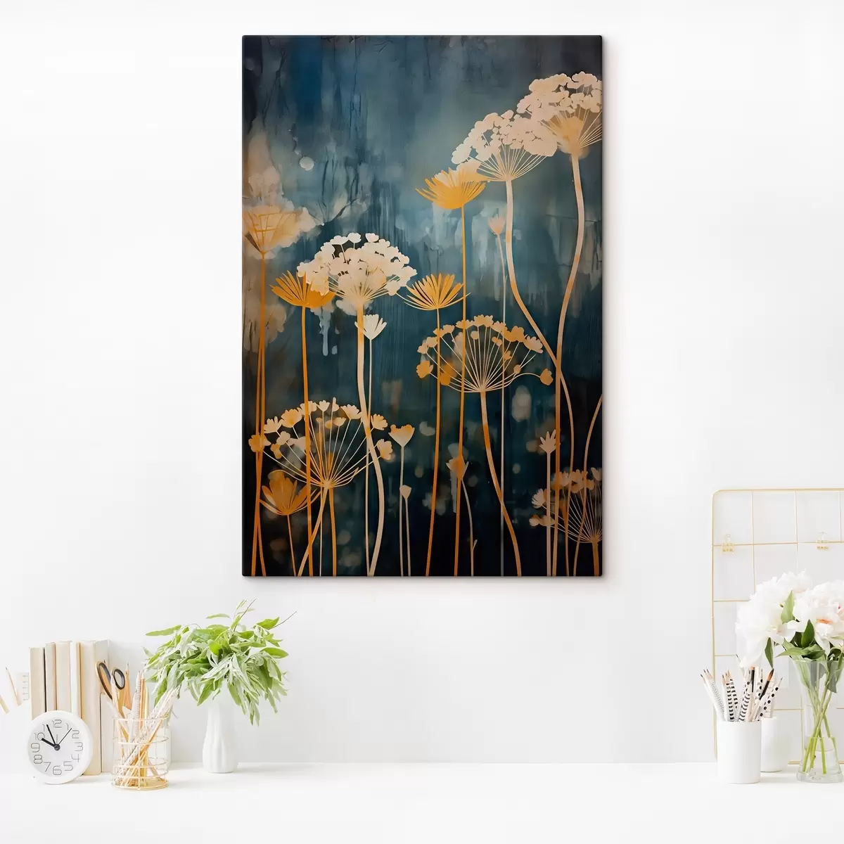Tableau Fleurs stylisées aux tiges fines sur fond sombre Nr s46188