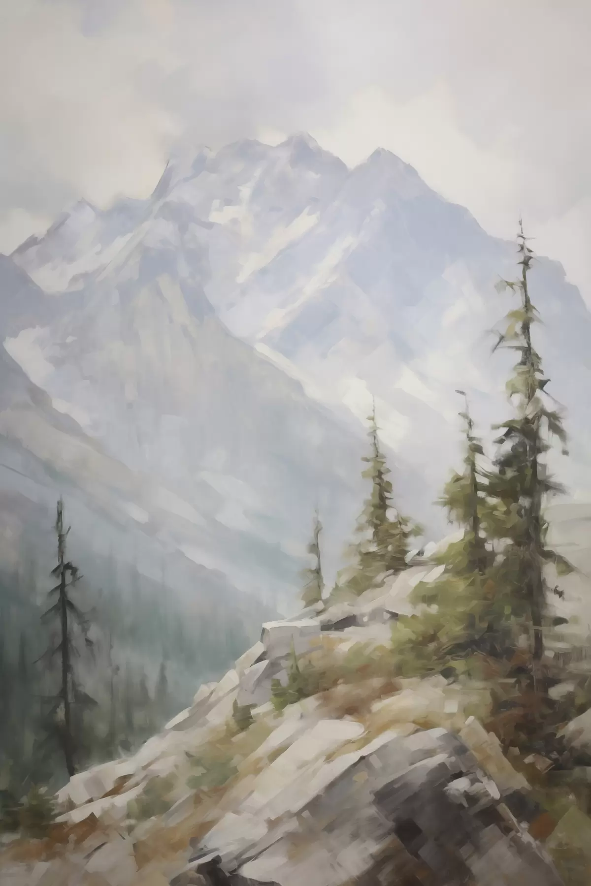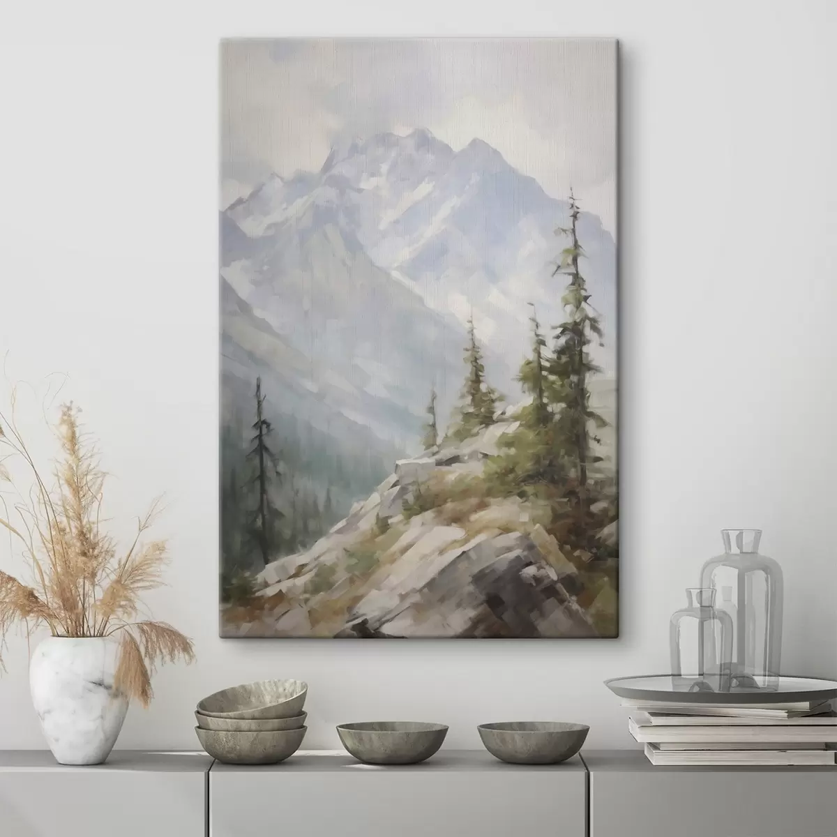 Tableau Des épicéas avec les montagnes en toile de fond Nr s46202