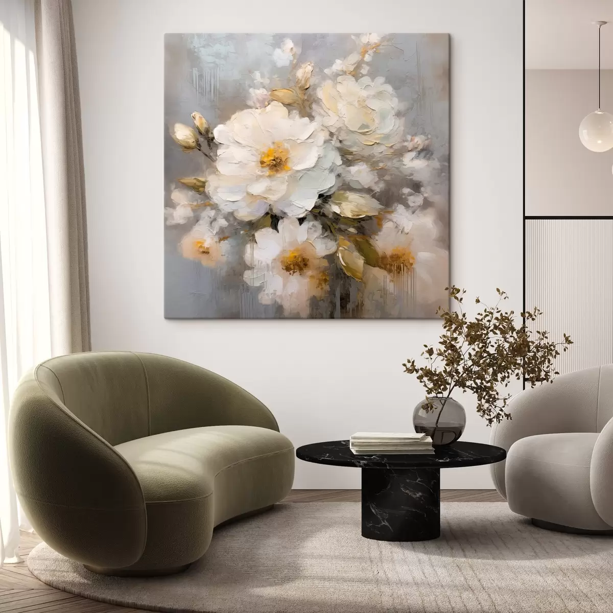 Trois types de matériaux peuvent être commandés : Economic Canvas - matériau dense et durable pour l'impression numérique, identique à la toile de peintre, surface imperméable, reproduction réaliste des détails, matériau à grain moyen. Premium Canvas - la texture ressemble à celle d'une toile de peintre (petits fils entrelacés). Reproduction douce et détaillée de l'image sur une surface mate. Eco-Premium - tissu 100 % coton de haute qualité. Grâce aux fibres naturelles de coton, le matériau est durable et résistant à l'usure. Excellente reproduction des couleurs et des détails.