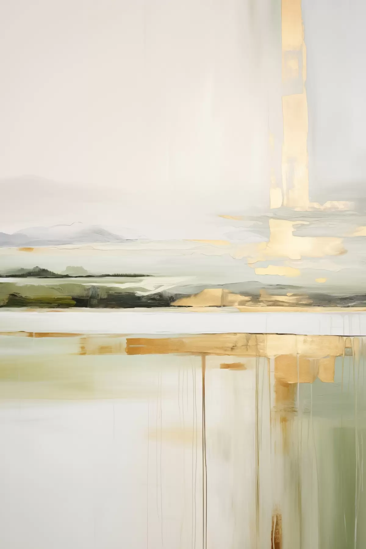 Tableau Paysage abstrait avec des accents jaunes, une composition minimaliste de terre, d'eau et de ciel, avec des couleurs douces s46268