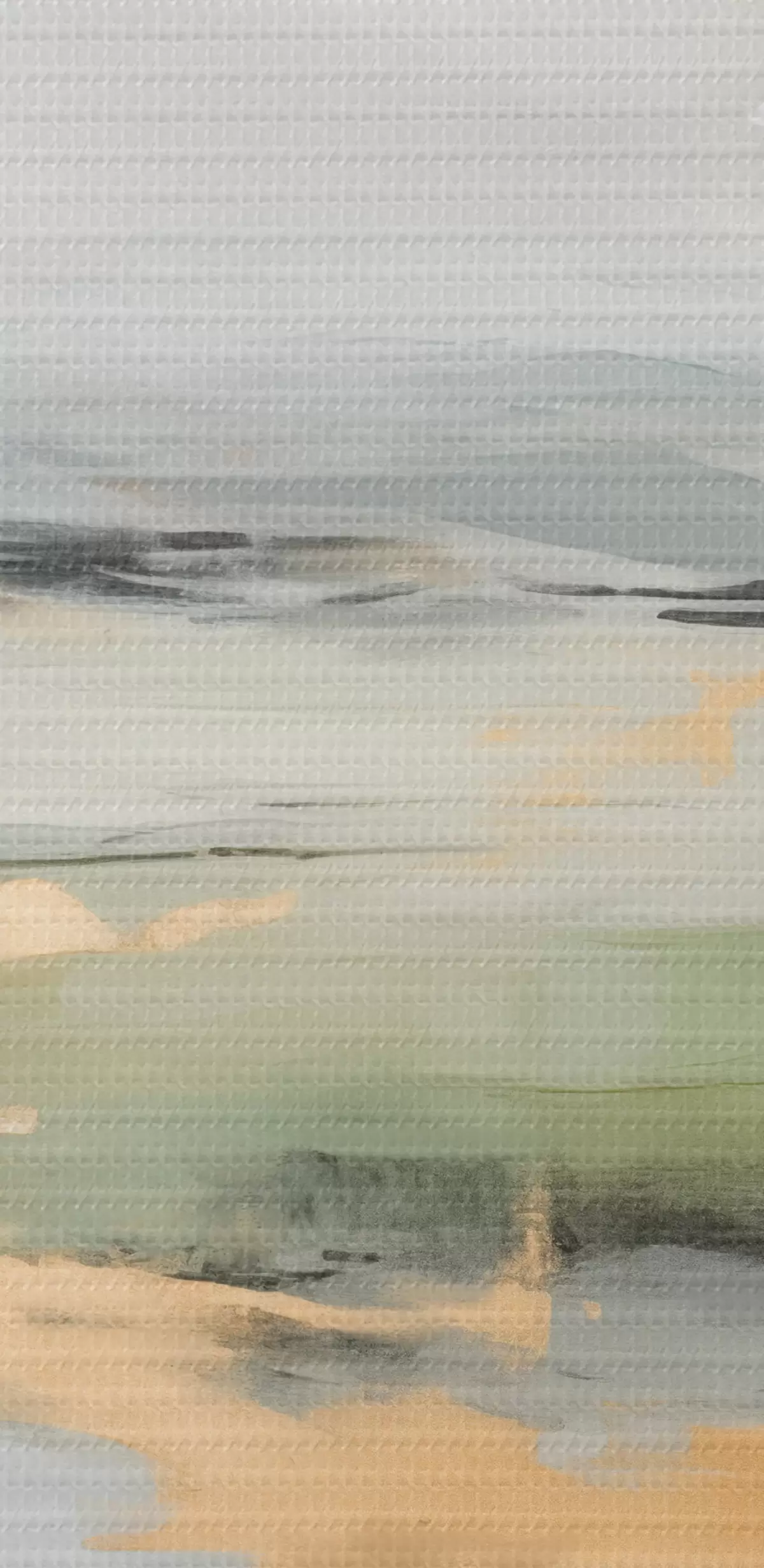 Tableau Paysage abstrait avec des accents jaunes, une composition minimaliste de terre, d'eau et de ciel, avec des couleurs douces s46269