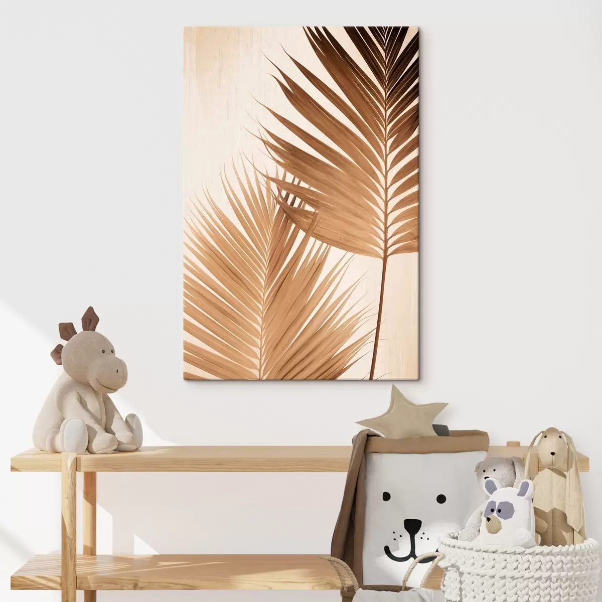 Tableau Feuilles de palmier dans des tons bruns, fond neutre, style minimaliste, éclairage naturel, ambiance tropicale s46274