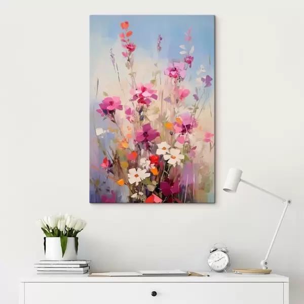 Tableau Des fleurs roses, blanches et vertes éclatantes sur un fond pastel doux Nr s46278