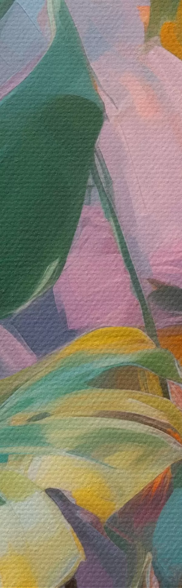 Tableau Plante abstraite monstera aux feuilles d'un vert éclatant, sur fond de douces teintes roses et violettes Nr s46286