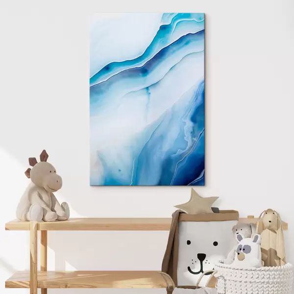 Tableau Imprimé abstrait bleu et blanc agate, lignes tourbillonnantes et dégradés, texture lisse, art moderne, minimaliste s46291