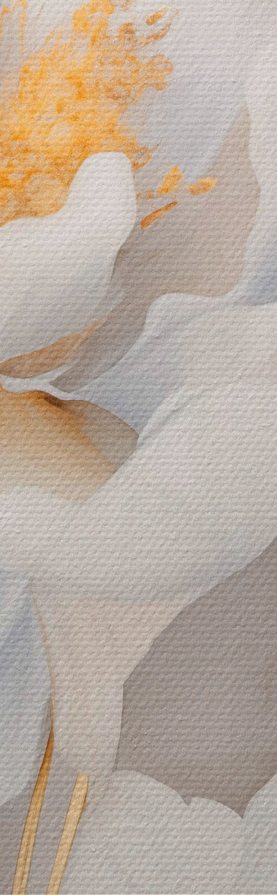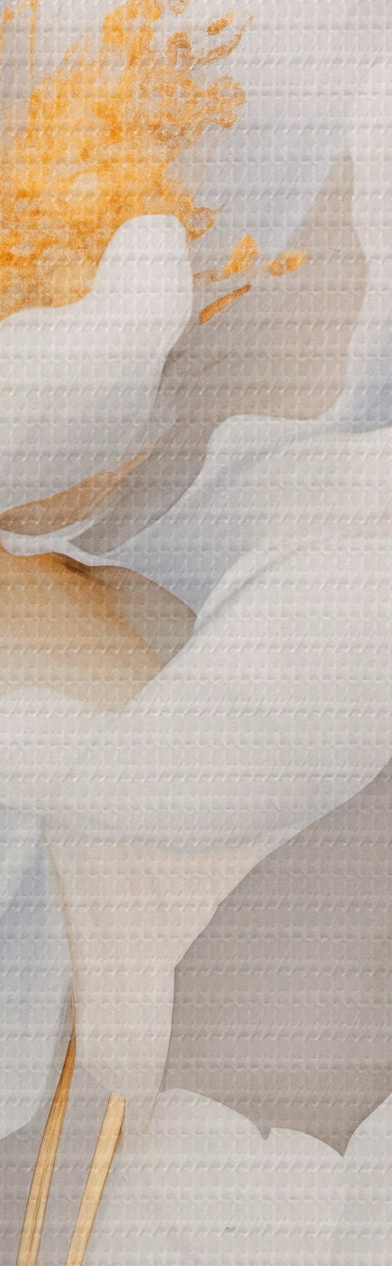 Tableau Fleurs blanches avec pistils et tiges jaunes, pétales délicats, composition élégante, fond neutre Nr s46293