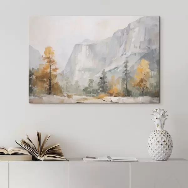 Tableau Paysage d'une forêt devant des montagnes, imitation d'une peinture s46299