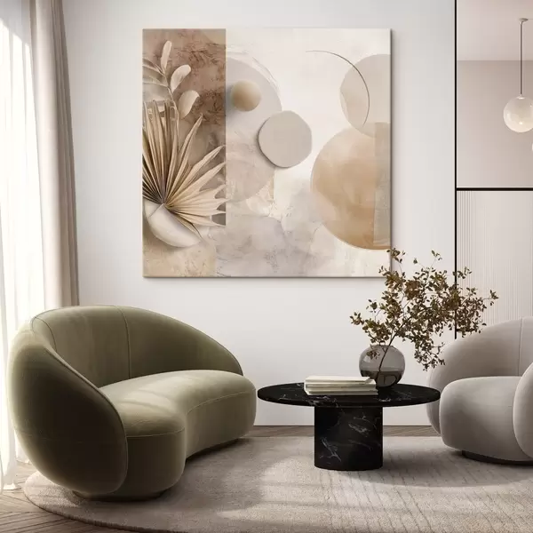 Tableau Feuilles de palmier séchées et cercles 3D dans les tons beiges Nr s46310
