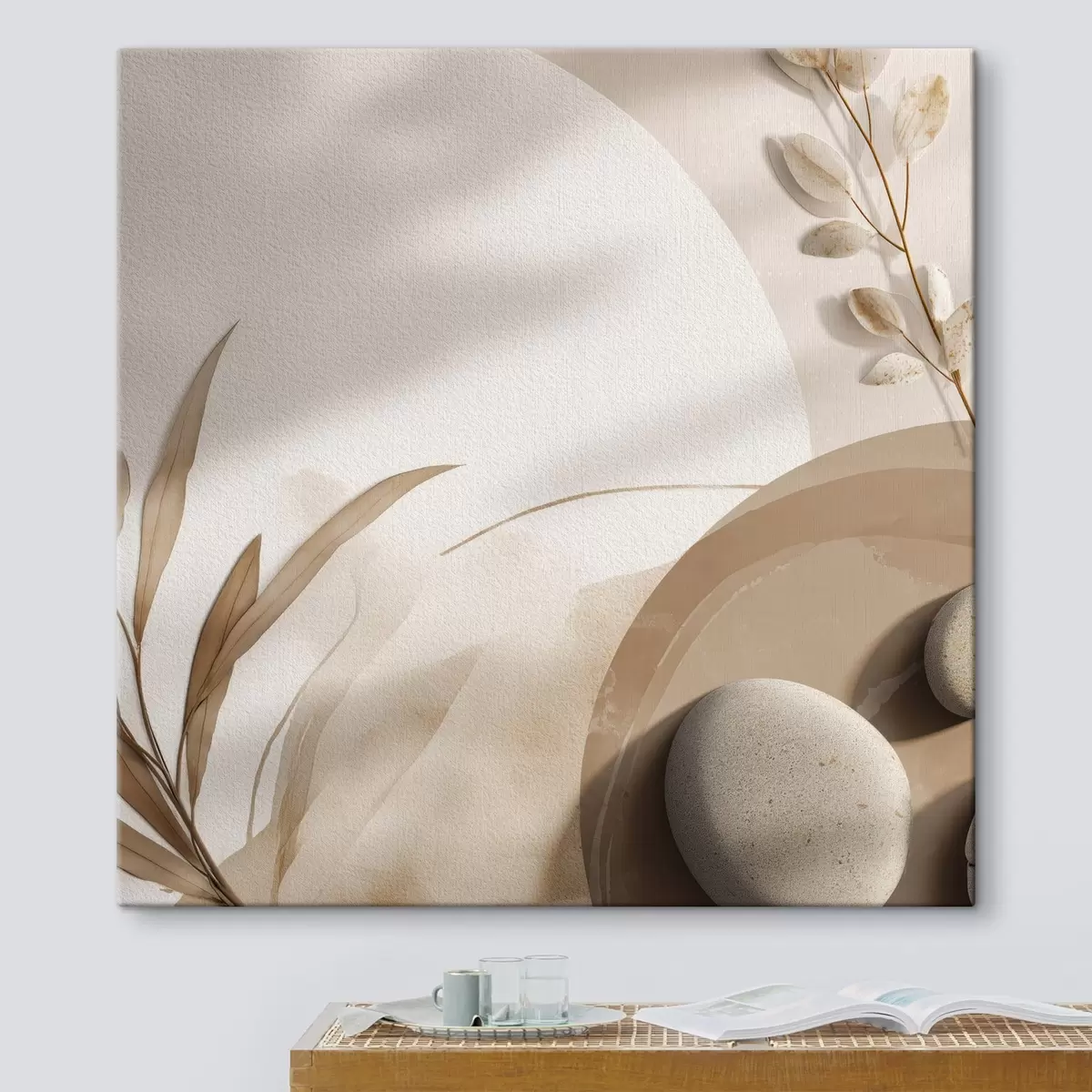Tableau Pierres et ombres sur le mur dans des tons beiges s46311