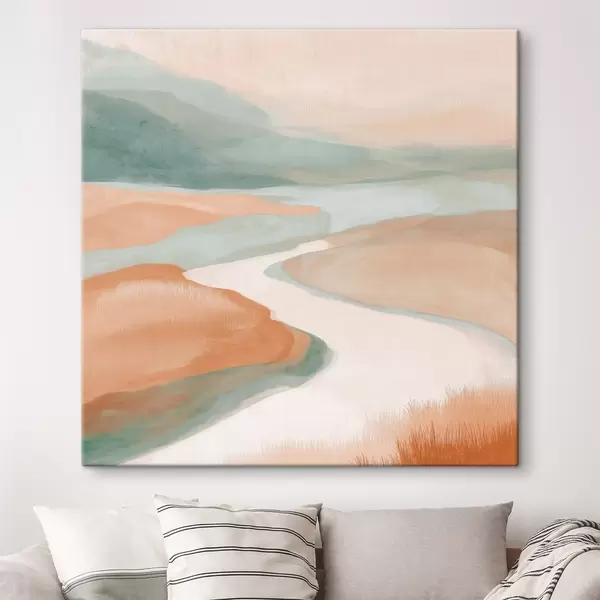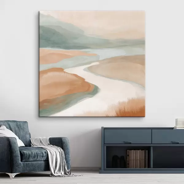 Tableau Paysage abstrait avec une rivière orange et verte Nr s46316