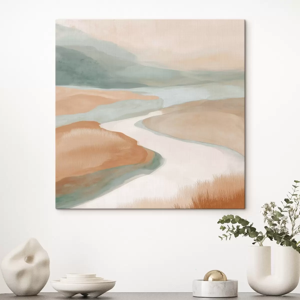 Tableau Paysage abstrait avec une rivière orange et verte Nr s46316