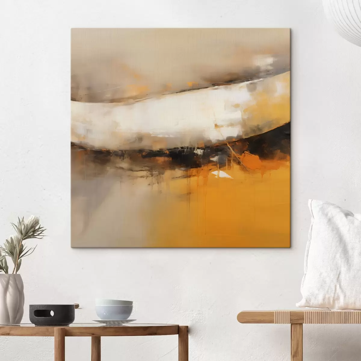 Tableau Composition dynamique aux tons orange et foncés s46318